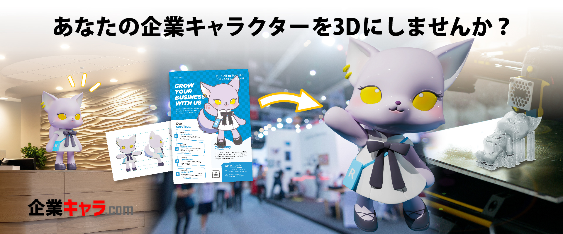 「企業キャラクター.com」 は、企業様の自社キャラクター(イラスト等)をもとに、オーダーメイドで3Dデータを作成します。